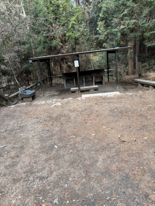 イナバ山から山頂まで同じ道を戻り 山頂からは平原の滝キャンプ場に下りるルートで下山した。なかなかの急傾斜だった。