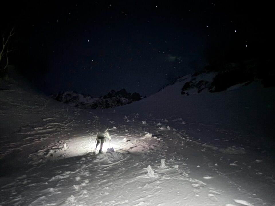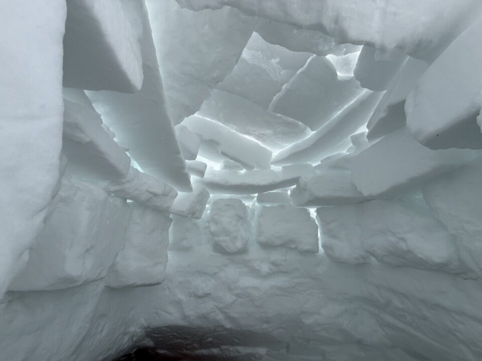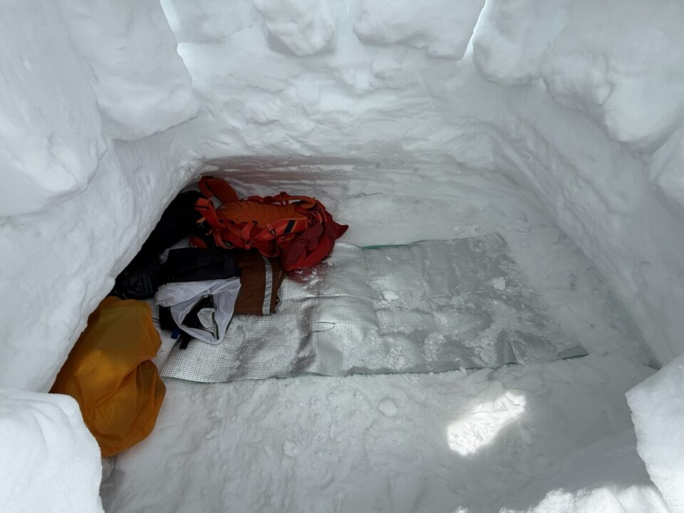 18:00 イグルーでの生活は初めてで思ってた以上に寒い。雪がずっとまとわりつくので寒いのが弱い私にとっては苦行だった。一応水作りが嫌になるといけないと思って水を担ぎ上げたのは正解だった。そのお陰で一応簡単に食事が出来た。それでも顔の手入れもコンタクトを外すのも、なにより食事をちゃんとするのも億劫で「明日はイグルーキーパーする」とずっとネガティブ発言をしていた。情けない。大事な水が凍っては困ると思いボトルを全てシュラフに入れて就寝。私の最強シュラフももってしても寒い。手は温かいのになんでだ?と原因を調べたらボトルの外側が凍っていたみたいで、シュラフの中で溶けて濡れてしまった。本当に色々が勉強になった。