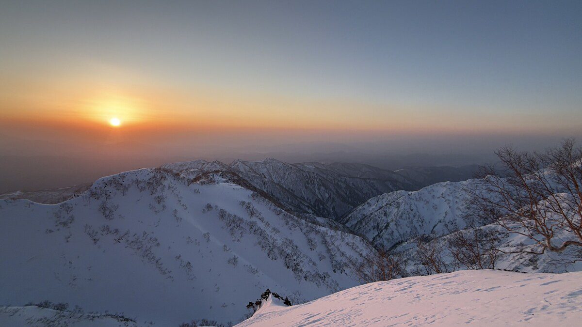 取付きまで上がると尾根なので明るく感じる。そこからも昨日のトレースが残っているのでそれを辿ってひたすらに高度を上げる。雪は程よく締まっていて爪が良く刺さる。