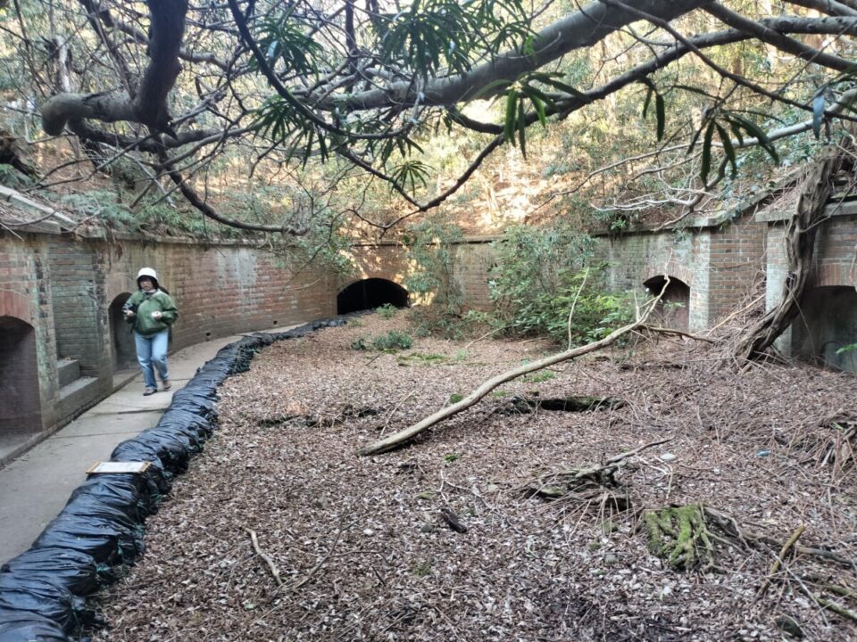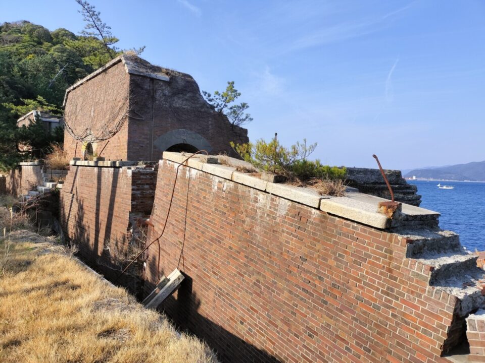 次に第二砲台跡地に着く。こちらは大阪を向いた海岸線沿いにあるせいか崩壊がひどく、とても中には入れそうにない状態だった。