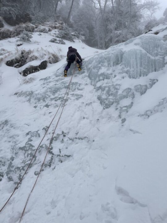 初めてのアイスクライミングでとても楽しかったです。アックスがめっちゃ効いたときは快感でした。