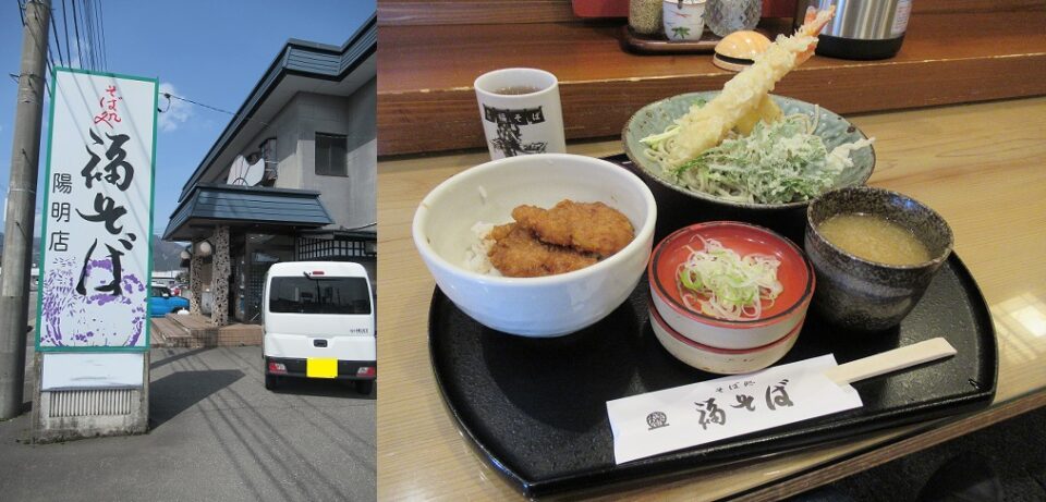 下山は思ったより早く進み、あるあるだが前山辺りまで下ると急激に天気が晴れてくる。そりゃないよと思うが、引き返す元気もなく潔く敗退。予定より早く下山できたので、いつもの「福そば」でおろしそばとソースかつ丼を頂き、温泉で汗を流し帰宅しました。
