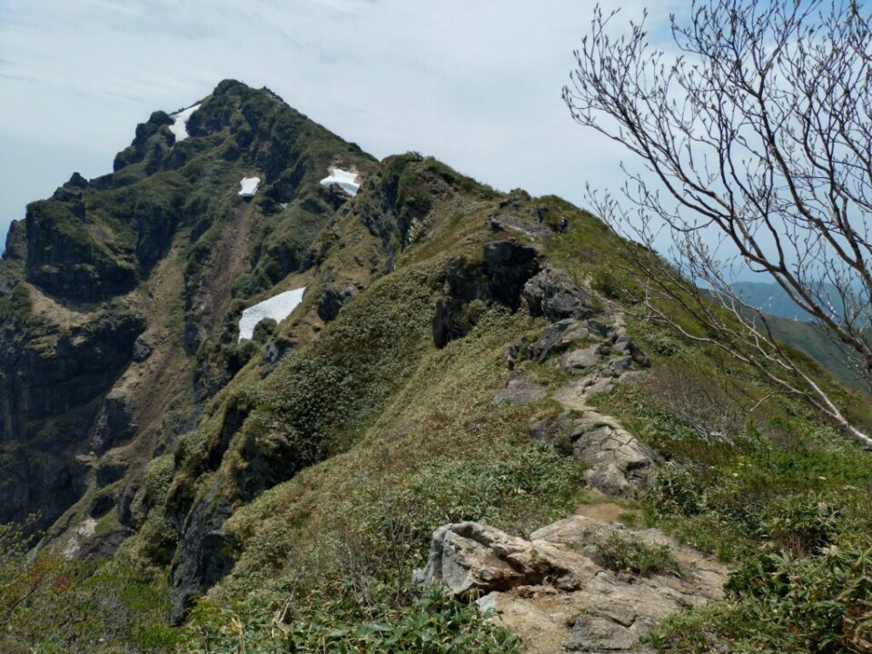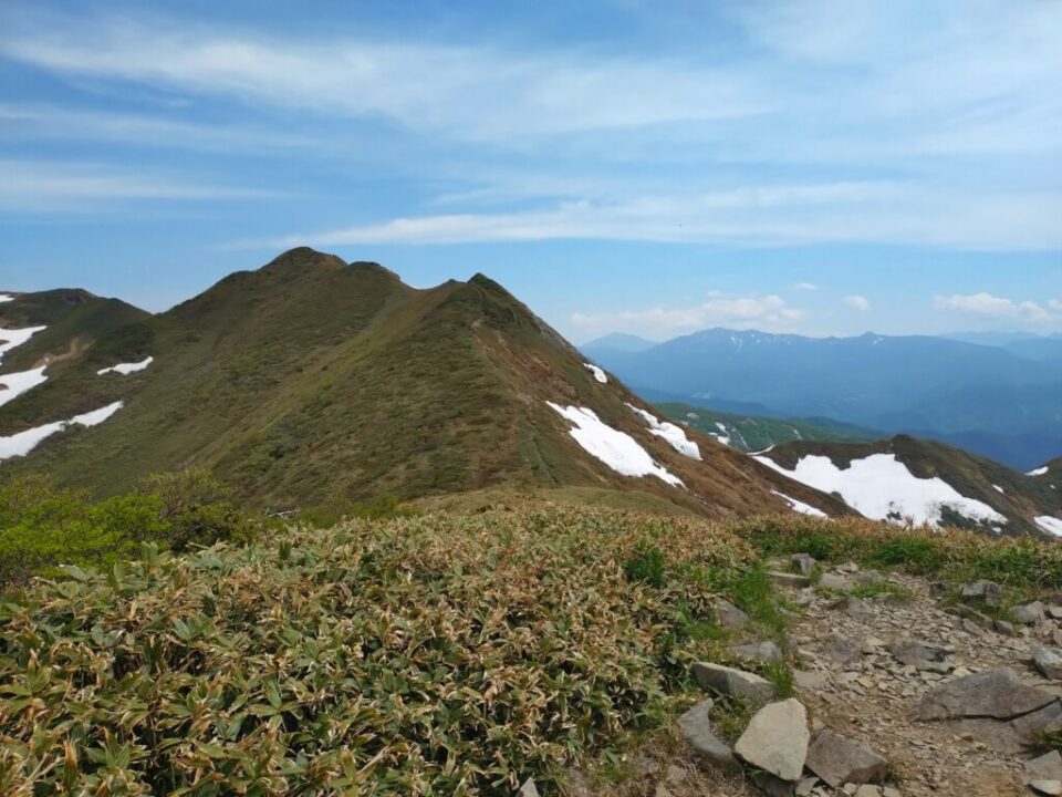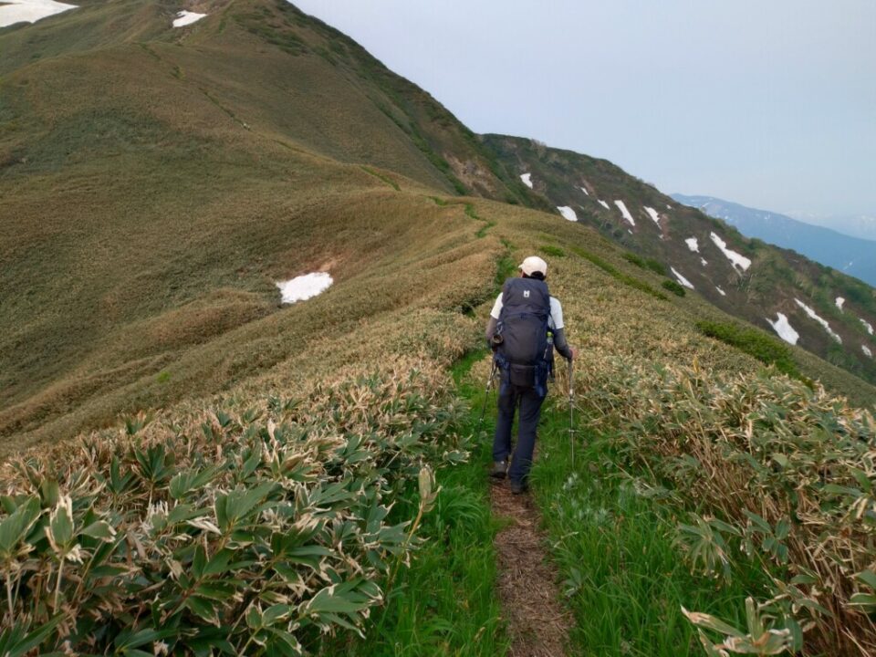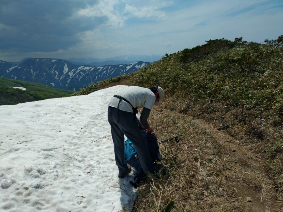 清水峠前の下りは長い雪渓が残っていたのですが、雪渓を少しそれた北側の登山ルートは雪が溶けており、回避できます。途中同じルートで日帰り縦走されてる方がいました。