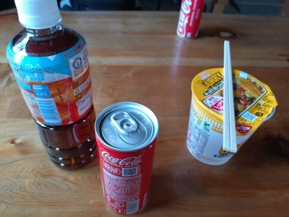 少しおりた肩の小屋でお昼ご飯 カップ麺 ドリンク売ってましたがビールは売り切れ。お昼ご飯美味しかったです。